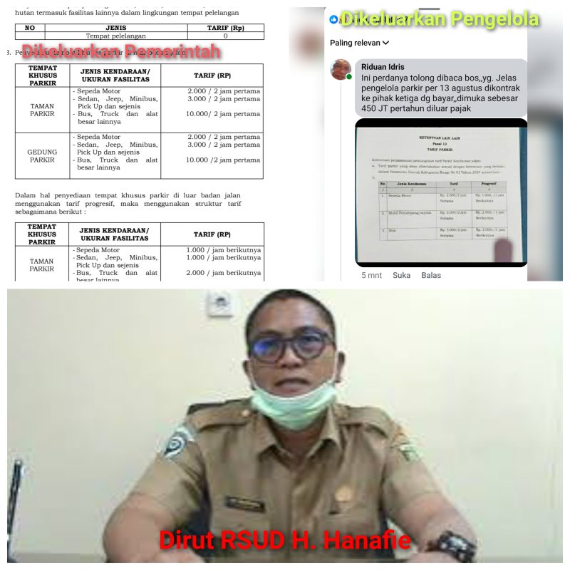 Direktur RSUD H. Hanafie, dr. Edi Mustafa, ketika ditemui di ruangannya (Kamis, 04/09/2025) mengatakan kalau dirinya juga kaget kalau ternyata ada dua versi Perda yang mengatur parkir RSUD.