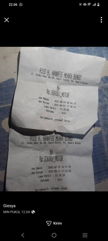 LANGITJAMBI, BUNGO, _ Polemik tarif parkir RSUD H. Hanafie Kabupaten Bungo sedang hangat jadi perbincangan dan viral di media sosial. Pasalnya, tarif parkir di RSUD H. Hanafie relatif mahal membuat masyarakat merasa terbebani.