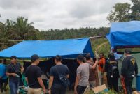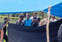 LANGITJAMBI, TEBO_ Proses ekshumasi (Pembongkaran Makam) jenazah Imam Komaini Sidik, warga Desa Karang Dadi, Kecamatan Rimbo Ilir, Kabupaten Tebo, Jambi, yang meninggal dunia diduga…