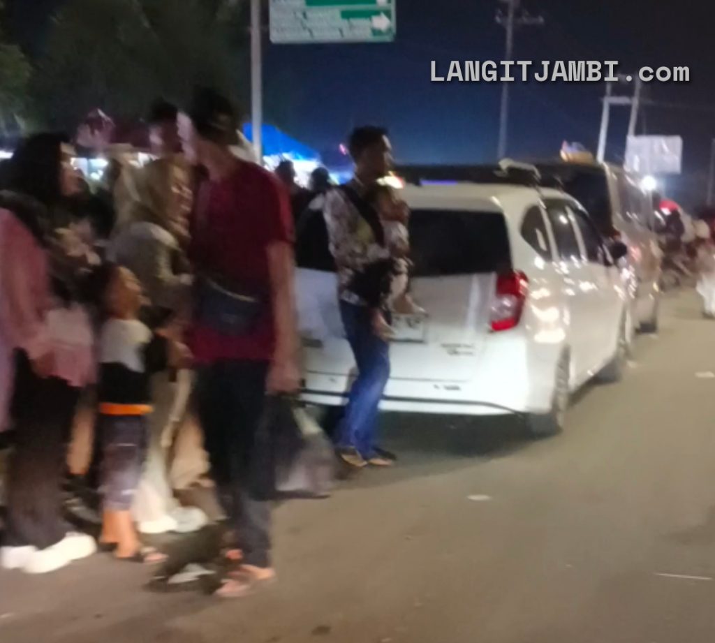 LANGITJAMBI, BUNGO_ Parkir kendaraan pengunjung pasar malam yang berada diperumahan Bungo Green CIty menyebabkan kemacetan parah dijalan Lintas Sumatra Kabupaten Bungo. Hal itu dikarenakan kendaraan pengunjung pasar malam yang parkir dibahu jalan dan bahkan dibadan jalan.