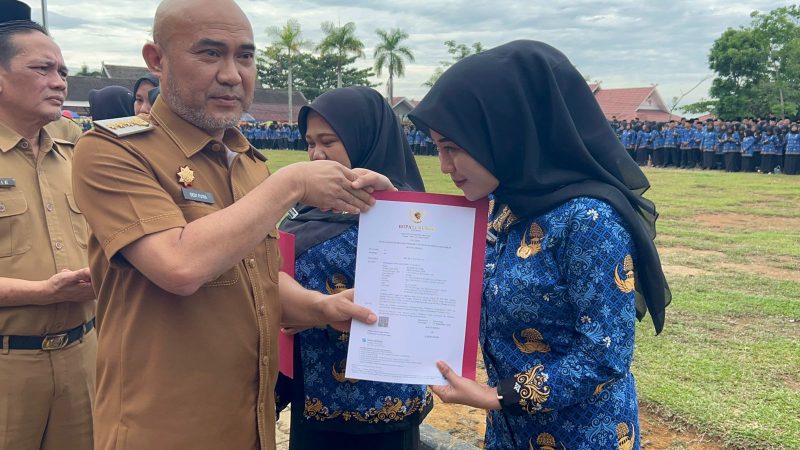 LANGITJAMBI, BUNGO_ Bupati Bungo H. Dedy Putra, resmi menyerahkan 988 Surat Keputusan (SK) Pegawai Pemerintah dengan Perjanjian Kerja (PPPK) untuk formasi tahun 2024. Dengan harapan agar para PPPK dapat bekerja profesional dan memberikan pelayanan terbaik kepada masyarakat. (Selasa, 30/09/2025)