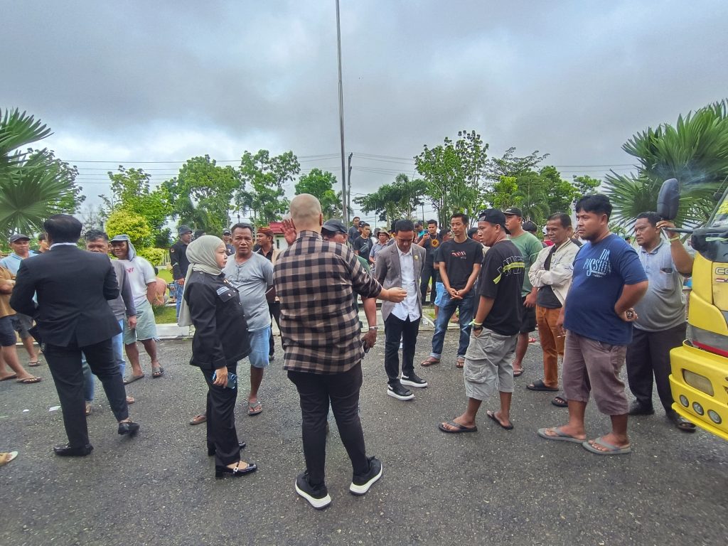 LANGITJAMBI, BUNGO, _Ratusan Sopir truk yang tergabung dalam Ikatan Persatuan Sopir Truck Kabupaten Bungo (IPSTKB) menggelar demo di depan gedung DPRD Kabupaten Bungo pada selasa 16/09/2025.