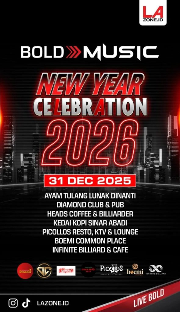 Salah satunya Brosur pesta musik pada 31 Desember 2025. Di brosur tersebut Bold music sepertinya akan mengadakan pesta music di sejumlah tempat seperti, Diamond Club & Pub (DC), Heads Coffe & Billiar, Kedai Coffe Sinar Abadi, Picollo’s Resto KTV & lounge, Boemi common place, dan InfiniteInfinite Billiar & cafe.