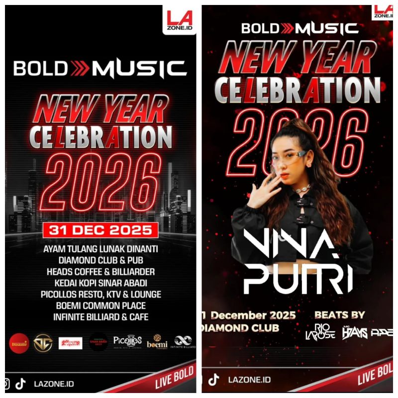 Salah satunya Brosur pesta musik pada 31 Desember 2025. Di brosur tersebut Bold music sepertinya akan mengadakan pesta music di sejumlah tempat seperti, Diamond Club & Pub (DC), Heads Coffe & Billiar, Kedai Coffe Sinar Abadi, Picollo’s Resto KTV & lounge, Boemi common place, dan InfiniteInfinite Billiar & cafe.